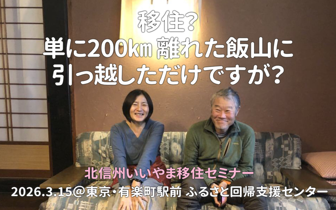 長野県飯山市へ移住をお考えの方、田舎暮らしに興味のある方向けに、先輩移住者からの体験談を含めたセミナーを、2026年3月15日(日)東京で開催します。