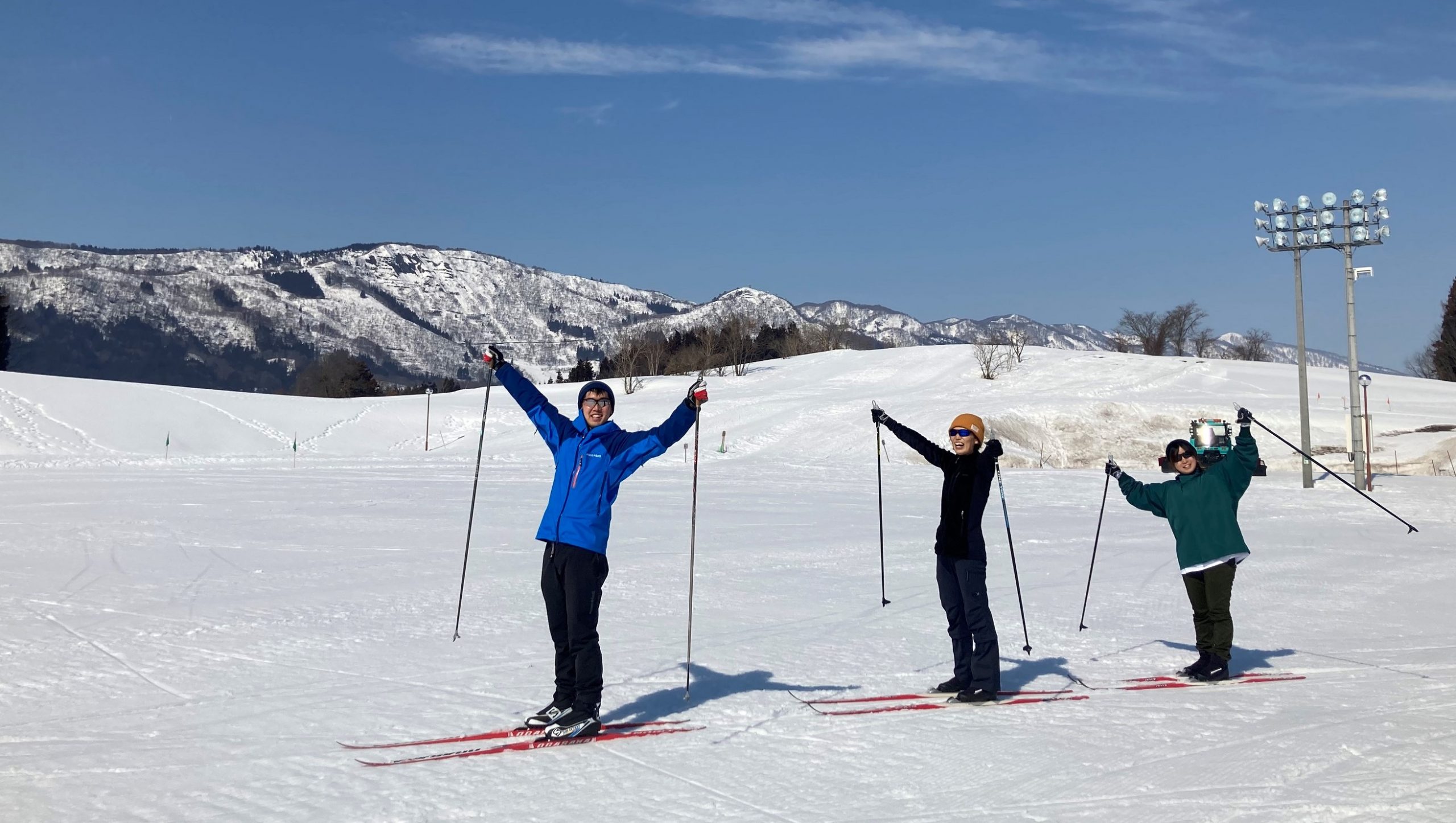 飯山市内にある長峰スポーツ公園の多目的グラウンド周辺は、雪が積もるとクロスカントリースキーのコースに変身! 体験談や利用方法の詳細はこちらの記事をどうぞ。